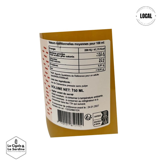 Jus de Clémentines Pressées - 100% Pur Jus - Anti Gaspi et Solidaire | 75cl