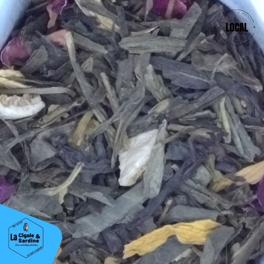 - Zéro déchet : Nos produits sont conditionnés en vrac, dans des boîtes métalliques réutilisables ou dans des sachets en papier compostable.