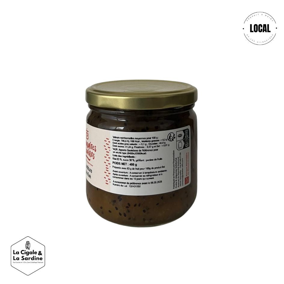 Kiwi 63%, sucre 36%, gélifiant : pectine de fruits.